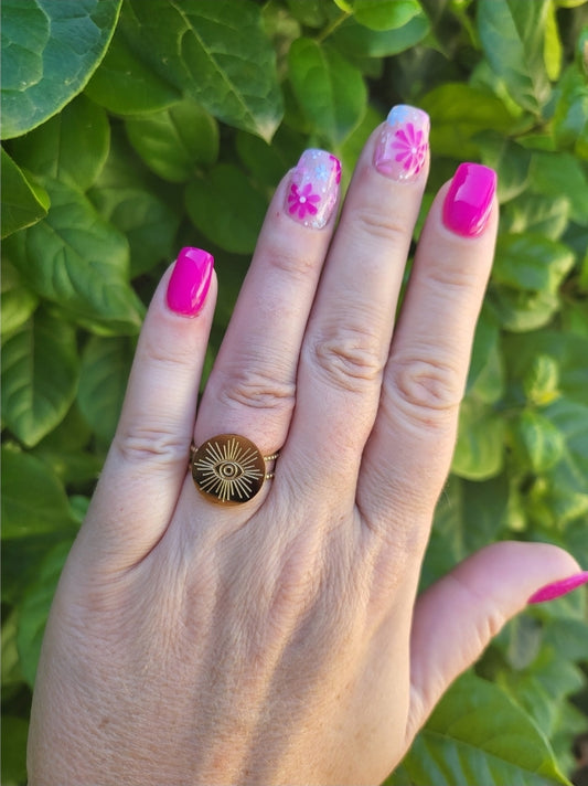 Bague oeil protecteur porte-bonheur en acier inoxydable.