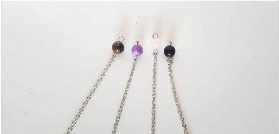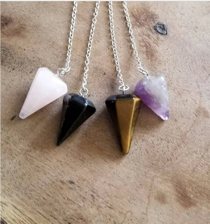 Divinatory pendulums in rose quartz, tiger's eye, onyx, amethyst or quartz