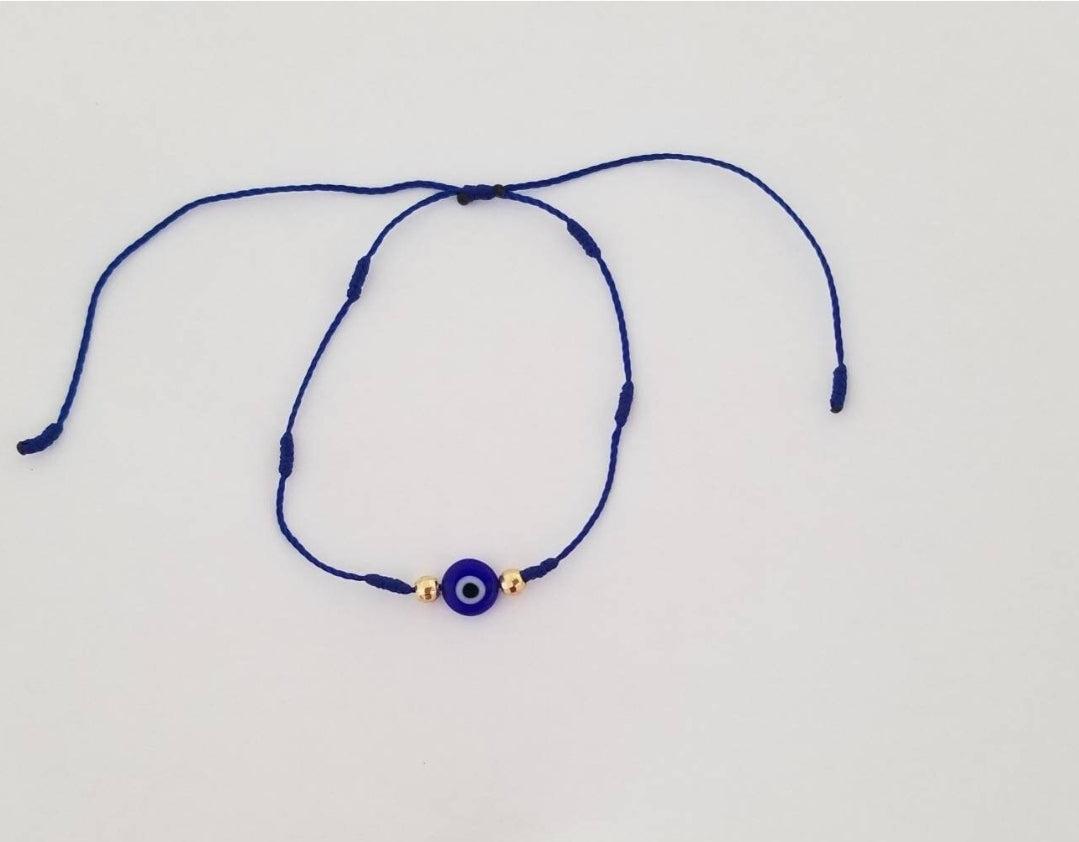 Bracelet réglable avec 7 noeuds pour la réalisation de 7 voeux et oeil protecteur porte-bonheur contre le mauvais œil.